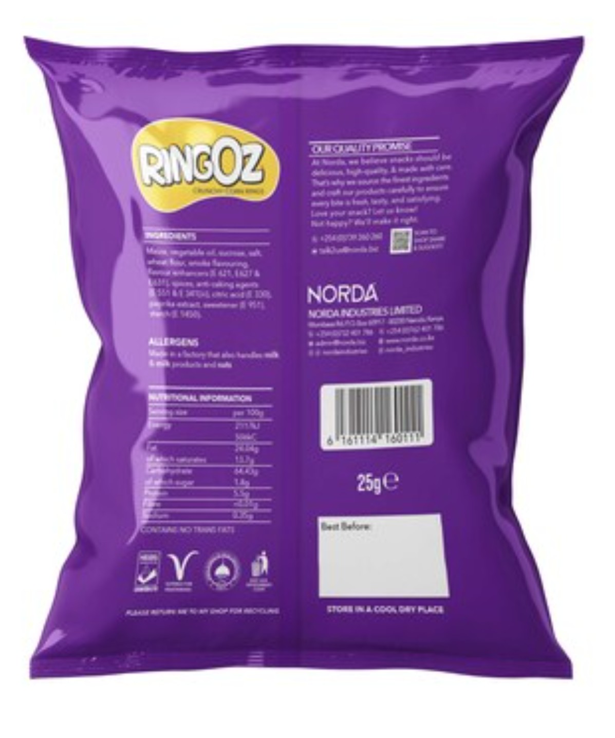 Keywords for SEO: Norda Ringoz, Sweet Paprika, corn rings, crunchy snack, baked snack, Kenyan snack, on-the-go snack, 25g snack.